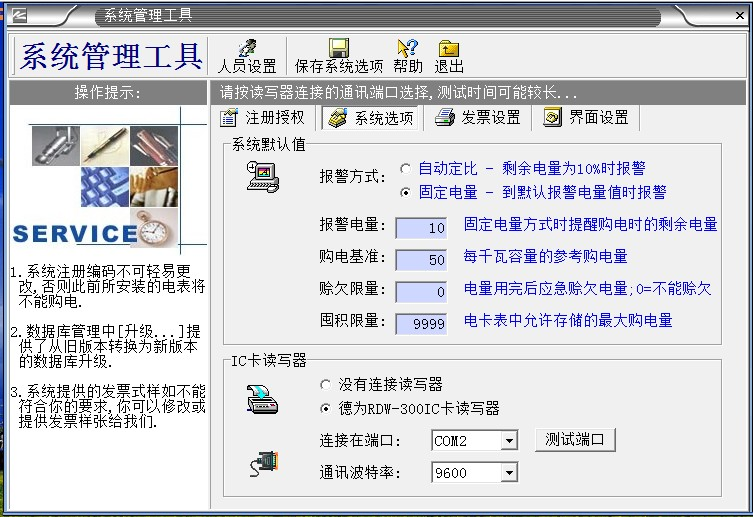 2、“報警電量”這里為默認(rèn)的,不用更改,(例如:IC卡充了100度,就是10度的時候開始報警,按充電量的10%電量報警)