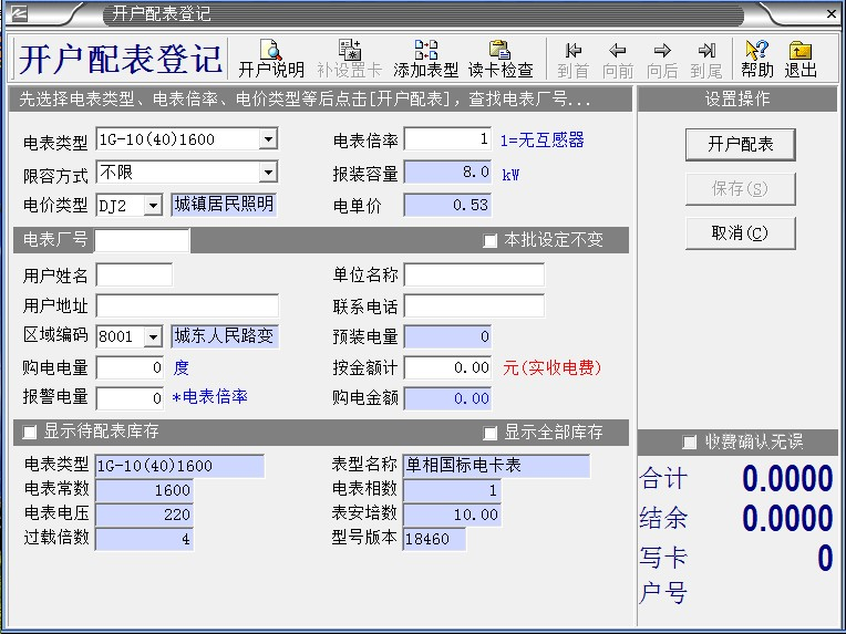 ,鼠標(biāo)左鍵:“開戶配表登記”,出現(xiàn)以下對話框: